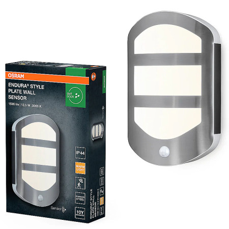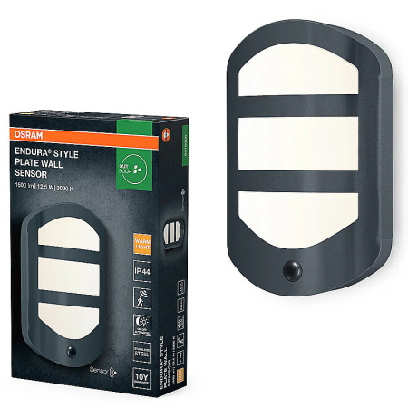 Vonkajšie kovové nástenné LED svietidlo oválne, s pohybovým senzorom - svetelný tok: 1500 lm •...