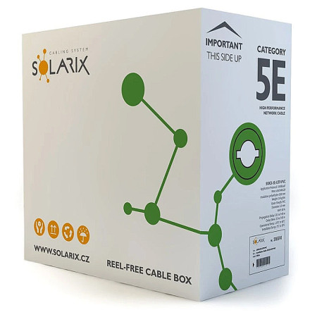 Kvalitný netienený kábel Solarix CAT5E s PVC plášťom a triedou reakcie na oheň E, 305 m box....
