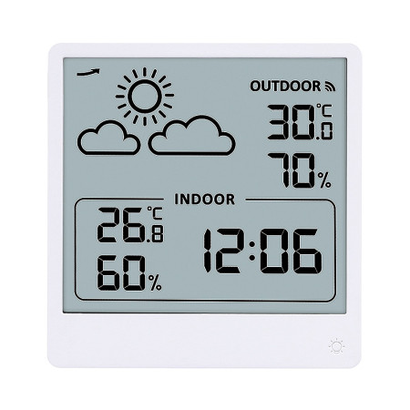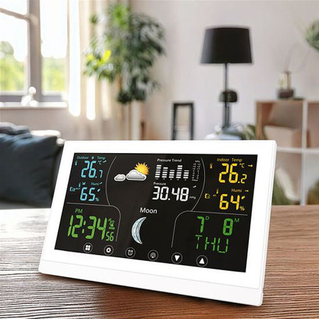 Moderná meteorologická stanica pre vnútorné použitie, ktorá kombinuje funkcie teplomera,...