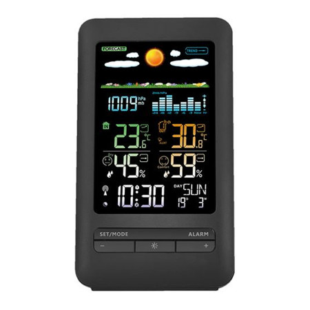 Meteostanica, čierna • farebný LCD • vnútorná/vonkajšia teplota a vlhkosť • tlak • budík •...