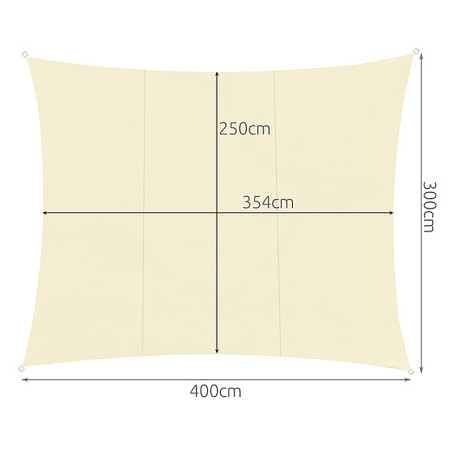 Tieňová plachta 4 x 3m - obdĺžniková, béžová. Materiál vodeodolný a odolný proti vlhkosti a...