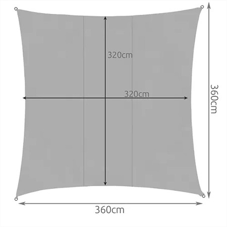 Tieňová plachta 3,6 x 3,6m - štvorcová, sivá. Materiál vodeodolný a odolný proti vlhkosti a...