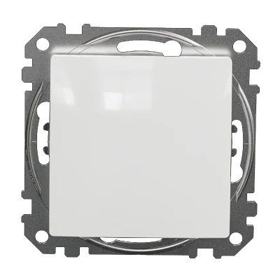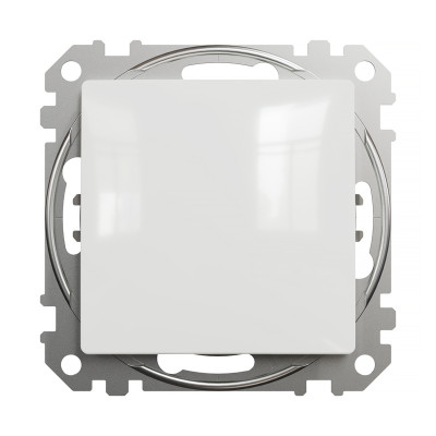 Biele jednopólové tlačidlo Sedna, súčasť série Sedna Design od Schneider Electric. Má lesklý...