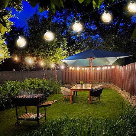 Záhradná girlanda svetelná reťaz 15ks LED E27, teplá biela - žiarivá záhradná girlanda vytvorí vo...