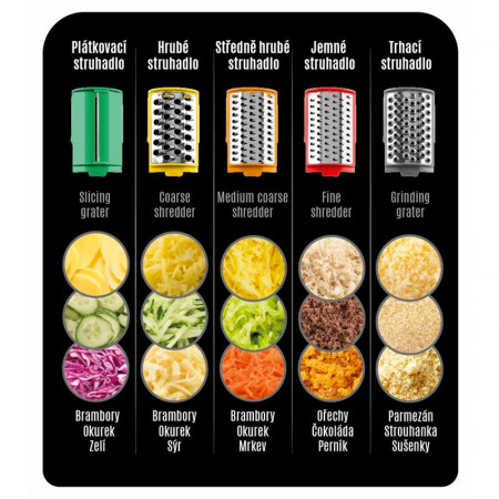 Elektrické strúhadlo s 5 výmennými nadstavcami na strúhanie a krájanie, DC motor. Kompaktná...