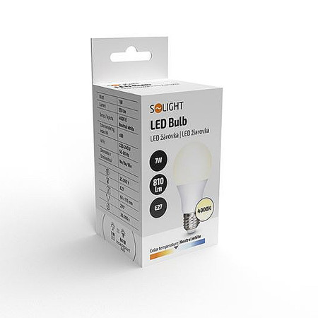 LED žiarovka, klasický tvar - výkon: 7W • pätica: E27 • farba svetla: Neutrálna biela (4000K) •...