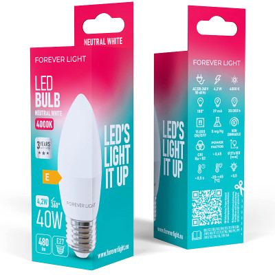 LED žiarovky Forever Light E27 C37 s výkonom 4.2W a svetelným tokom 480 lm sú energeticky...