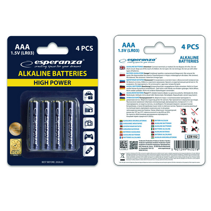Najkvalitnejšie alkalické batérie Esperanza AAA (R3 / LR3 / LR03).