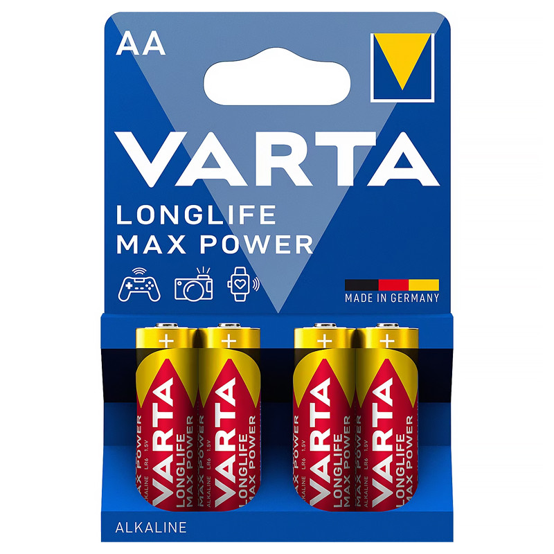 Alkalické batérie Varta Longlife Max Power AA typu LR6 sú vysokoenergetické, majú dlhšiu životnosť a kapacitu.