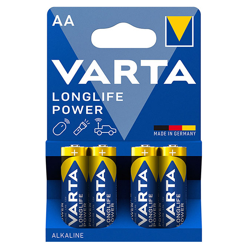 Alkalické batérie Varta HIGH Energy AA typu LR6 sú výkonné batérie pre obzvlášť energeticky náročné aplikácie, ako sú hračky, audio zariadenia, hudobné nástroje, elektronické hry, detektory dymu a mnoho ďalšieho.