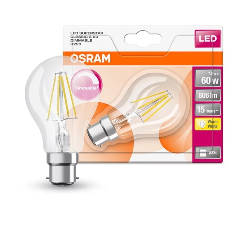 Žiarovka OSRAM LED SCLA60D B22d 7,5W/827 FILAMENT DIM