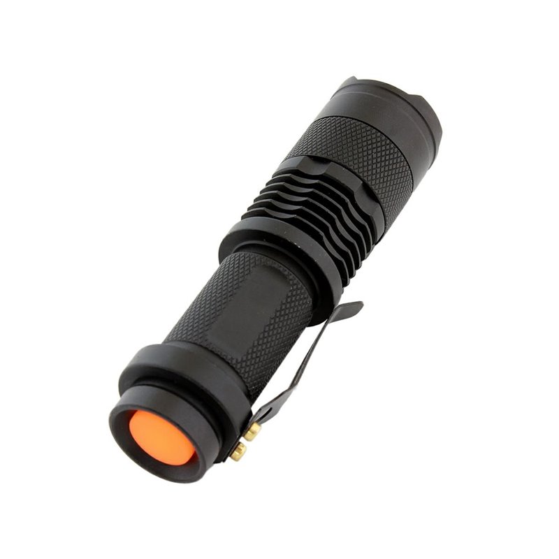 Taktická baterka s ultra silnou diódou CREE-XPE Q5 s funkciou ZOOM do 300 m, vo veľmi odolnom obale. Baterka má veľmi silný zdroj svetla s životnosťou až 100 000 hodín. Zariadenie používa výkonné a energeticky úsporné batérie typu 17500 (x1) alebo 1 x batériu AA. Baterka je tiež vodeodolná a nárazuvzdorná. Spínač je zaistený pevnou gumou a použité O-krúžky chránia zariadenie pred nečistotami a prachom.