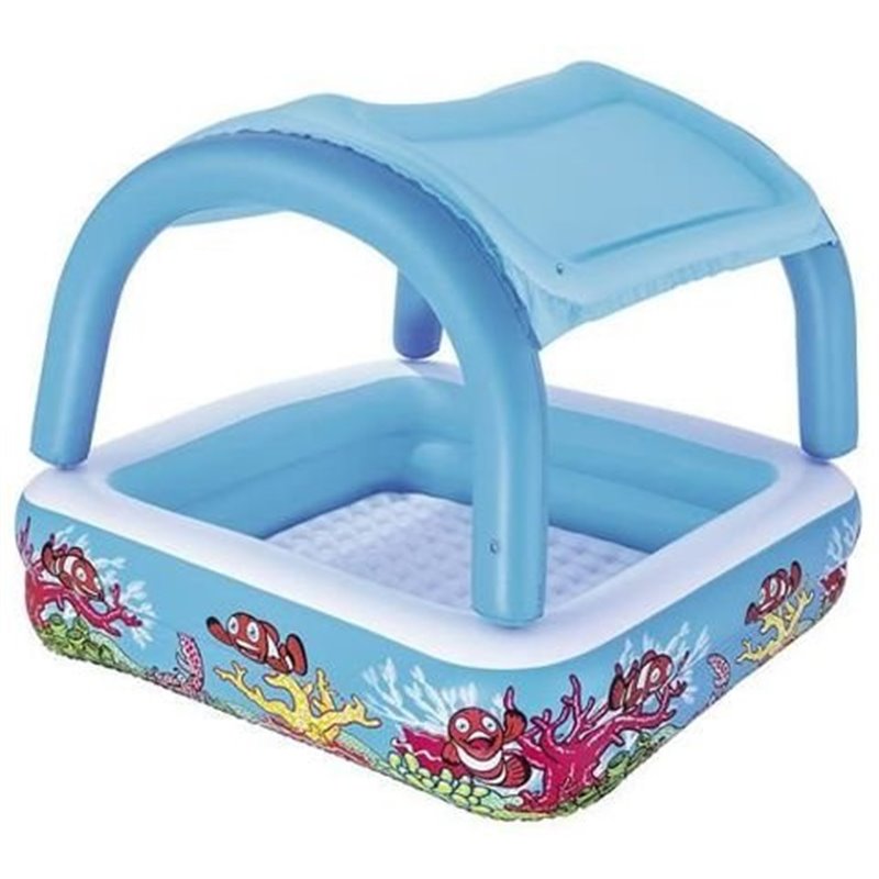 Detský nafukovací bazénik v dizajne oceán, v ktorom zažijete v horúcich letných dňoch veľa zábavy a príjemného osvieženia. Bazénik môžete zatieniť praktickou strieškou, ktorá je súčasťou balenia. Na zostavenie nepotrebujete žiadne náradie, stačí ho iba nafúknuť.