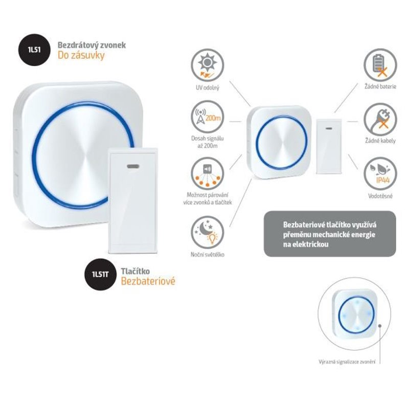 - funkcia "Learning code" umožňuje spárovanie viac zvončekov alebo tlačidiel do jednej skupiny