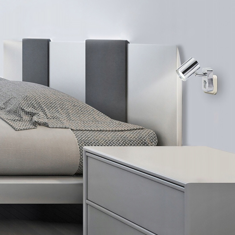 LED bodové svietidlo do zásuvky - chrómové • s vypínačom • výkon: 4W • svetelný tok: 350 lm • teplé biele svetlo • krytie: IP20 (vnútorné použitie)