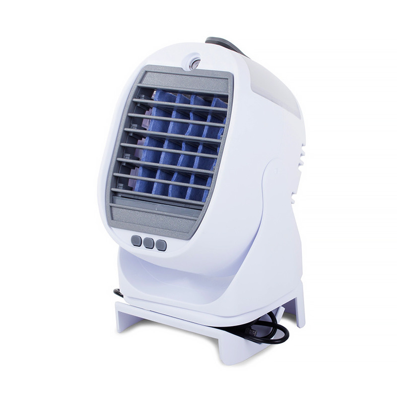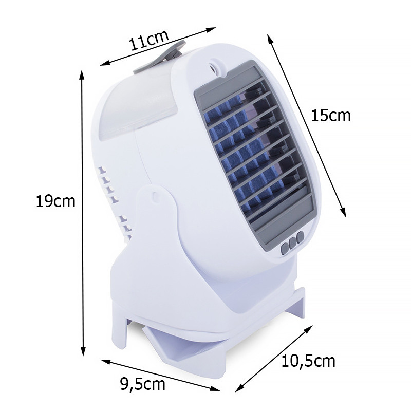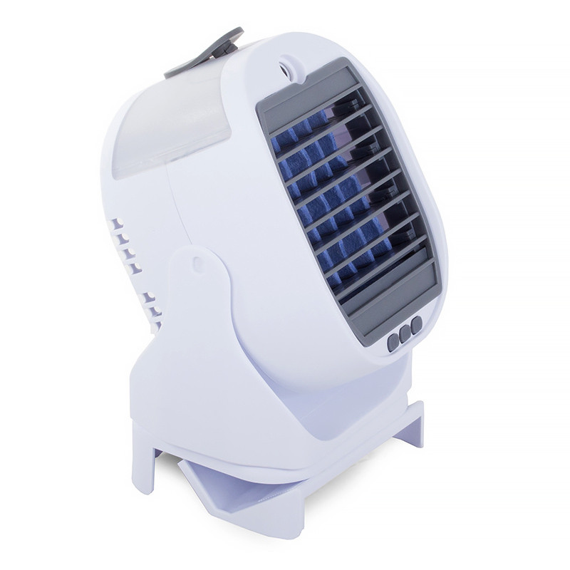 Ventilátor s nádobou na vodu je zariadenie, ktoré sa skvele hodí na horúce dni doma alebo v práci. Toto malé zariadenie dokáže výrazne znížiť teplotu v miestnosti. Vďaka malým rozmerom ho možno umiestniť na pracovný stôl, skrinku alebo stôl. Obsluha prístroja je veľmi jednoduchá. Nalejte vodu alebo vonný olej do nádoby a stlačte tlačidlo napájania. Prístroj má trojstupňovú reguláciu prietoku vzduchu.