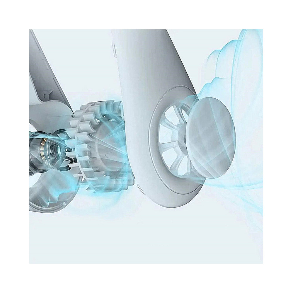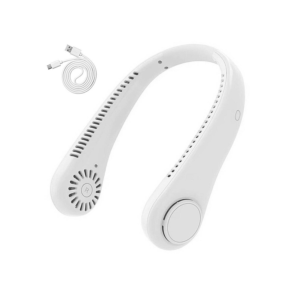 Kompaktný prenosný ventilátor bez lopatiek. Jeho šikovný dizajn v tvare slúchadiel umožňuje pohodlné zavesenie na krk. Je ideálny na cesty a dokonca aj doma (vďaka vstavanému stojanu). Napájaný vstavanou batériou, ktorá sa nabíja cez USB kábel. Nastaviteľné prúdenie vzduchu (3 rýchlosti). Nevyhnutný pri práci s počítačom v horúcich dňoch.