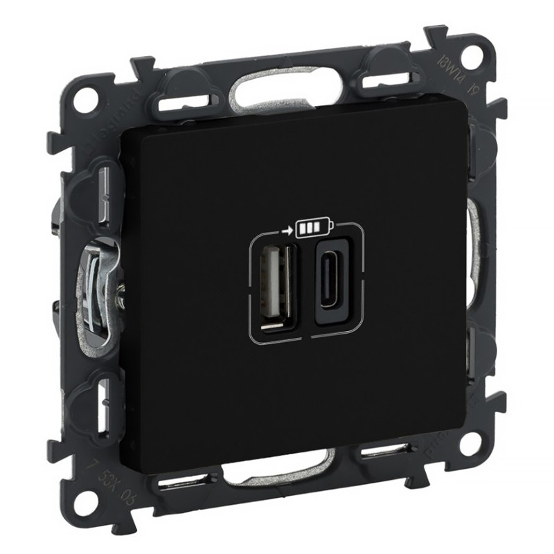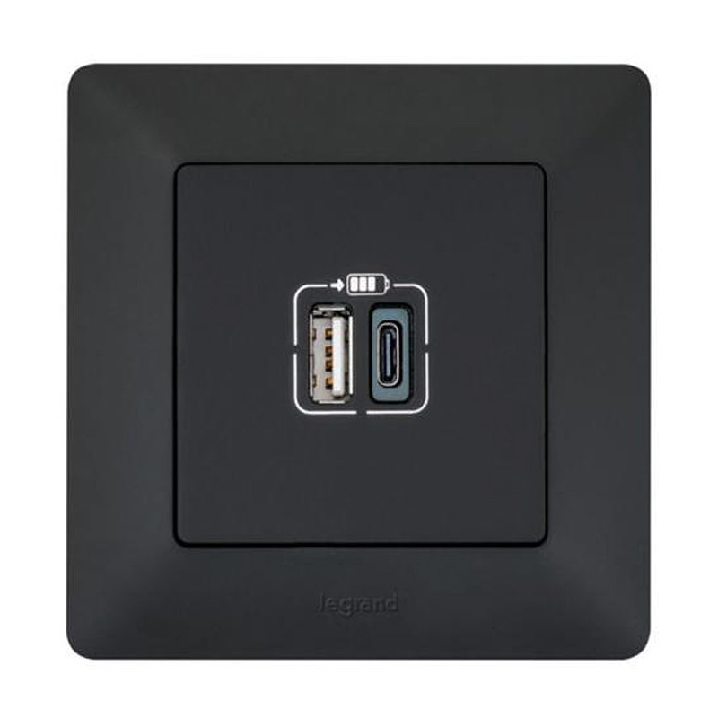 Dvojzásuvka 2xUSB nabíjačka USBA+USBC LEGRAND VALENA LIFE 756306 čierna