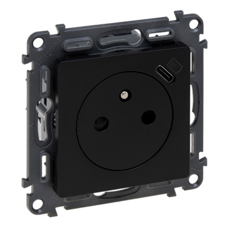 Jednozásuvka LEGRAND VALENA LIFE 756336 čierna s nabíjačkou USBC