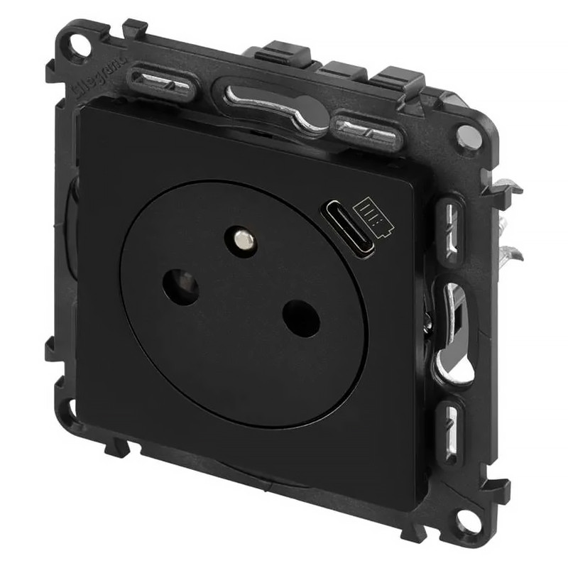 Čierna Legrand Valena LIFE zásuvka s USB-C nabíjaním 1500 mA 756336 je určená pre napätie 230 V a prúd 16 A. Výstupný prúd je 1 500 mA. Pracovná teplota je 0 až +45 °C. Krytie IP40. Typ povrchu je matný. V čiernej farbe RAL 9005.