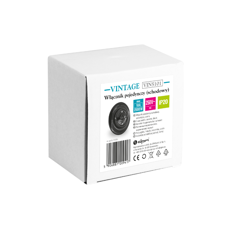 Vypínač č.1 VINTAGE čierny VIN5101 keramický pod omietku