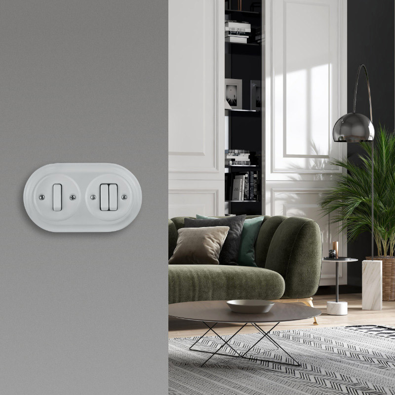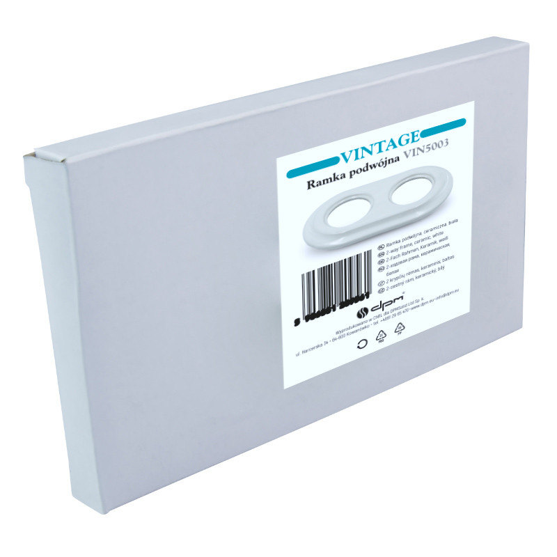Dvojitý rám prispôsobený štandardným vzdialenostiam medzi montážnymi krabicami. Zapustená montáž. Farba: biela