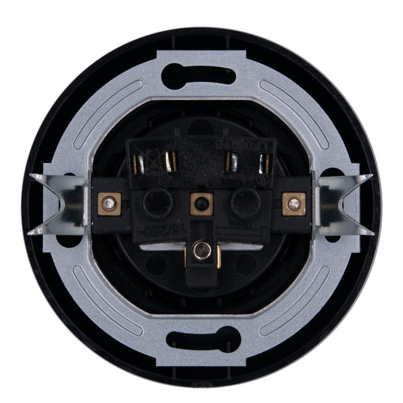 Zásuvka typu E (francúzska) s uzávierkou na prúdových cestách zaisťuje vynikajúcu ochranu pred úrazom elektrickým prúdom. Okrúhla jednozásuvka s rámom sa perfektne hodí ako do moderného podkrovného interiéru, tak aj do izieb v retro štýle.