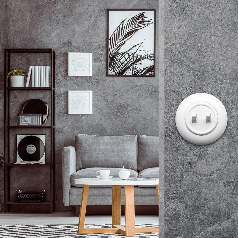 Dvojitý vypínač slúži na zapnutie a vypnutie svetla v miestnosti. Dva spínače znamenajú, že spínač je možné použiť pre lampu s minimálne dvoma tienidlami alebo pre dva rôzne zdroje svetla. Okrúhly originálny tvar dvojitého vypínača EX1 skvele poslúži doma aj v reštaurácii. Jedinečný štýl série EX1 dokonale zapadne aj do loftových a retro interiérov.