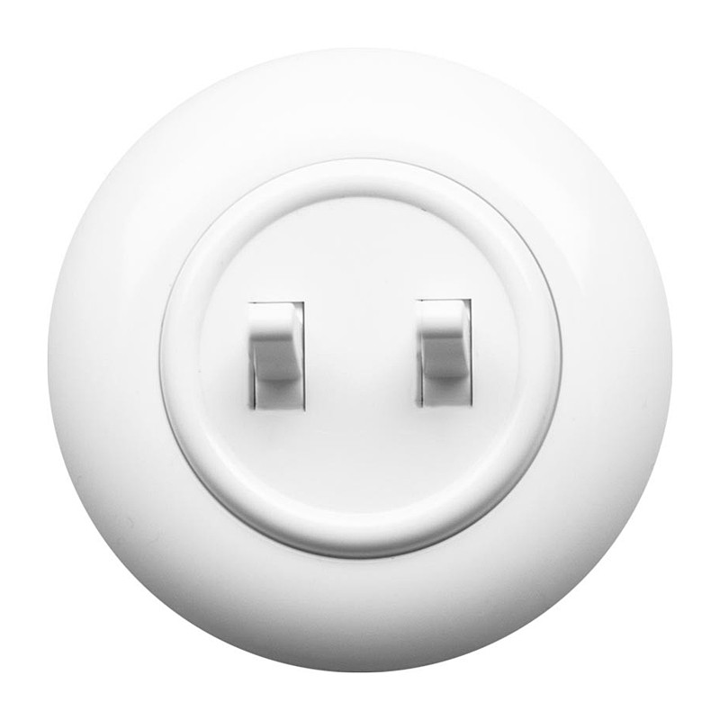 Dvojitý vypínač svetiel EX1, biely • Hľadáte spôsob, ako oživiť váš interiér a dodať mu jedinečný charakter? Vyberte si zásuvky v retro štýle VINTAGE! Tieto štýlové prvky uľahčia nielen ovládanie osvetlenia a elektrických zariadení, ale stanú sa aj ozdobou vášho priestoru. Sú jedinečným dekoratívnym prvkom, ktorý priťahuje pohľad a dodáva priestoru hrejivú, nostalgickú atmosféru.