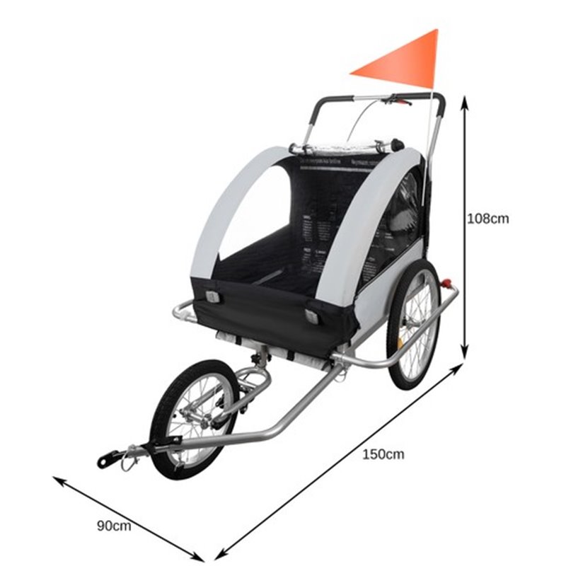 Príves je kompatibilný s akýmkoľvek modelom bicykla a jeho pripevnenie a odstránenie je intuitívne a veľmi jednoduché. Stabilný a odolný oceľový rám s tyčou zaisťuje bezpečnosť proti prevráteniu. Príves má dostatok miesta pre dve deti . Maximálna nosnosť je 35 kg.