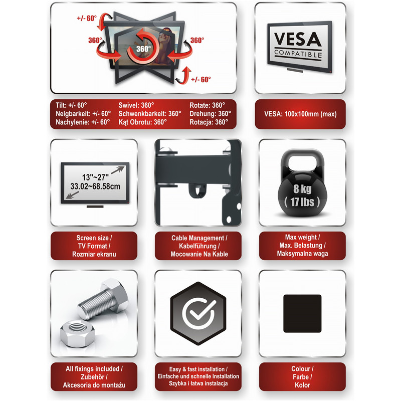Držiak TV RED EAGLE AX PIXEL 13-27 TWIN na stôl rameno dvojité