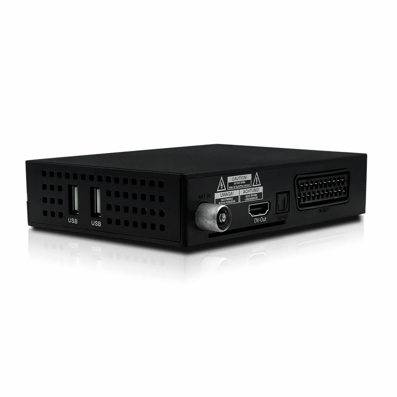 Univerzálny pozemný TV prijímač vysielaný v štandarde DVB-T/T2 . Podporuje najnovšie štandardy kódovania videa HEVC/H.265 10bit a zvuku E-AC-3 v súlade s najnovšími európskymi štandardmi pre pozemné televízne vysielanie. Malý estetický tvar prijímača dokonale zapadne do akéhokoľvek priestoru okolo televízora.