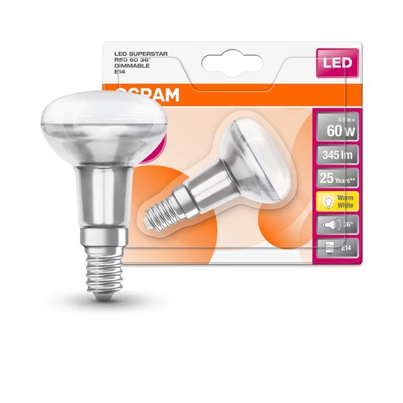 Žiarovka OSRAM LED SR5060D E14 R50 5,9W/827 36°
