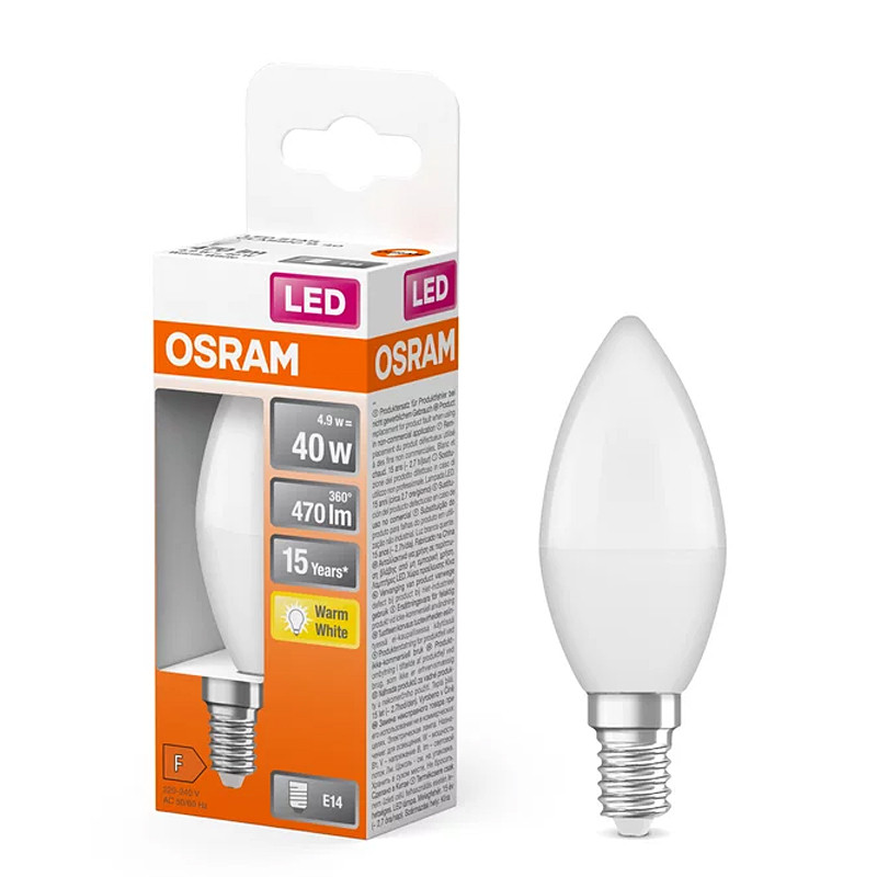Žiarovka OSRAM LED SCLB40 E14 4.9W/827 sviečka