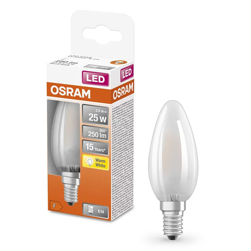 Žiarovka OSRAM LED SCLB25 E14 2,5W/827 sviečka FILAMENT GLFR matná