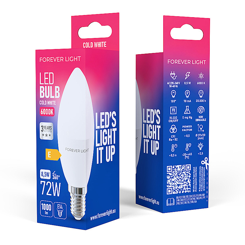 Žiarovka FOREVER LED E14 8,5W 6000K sviečka 1000lm