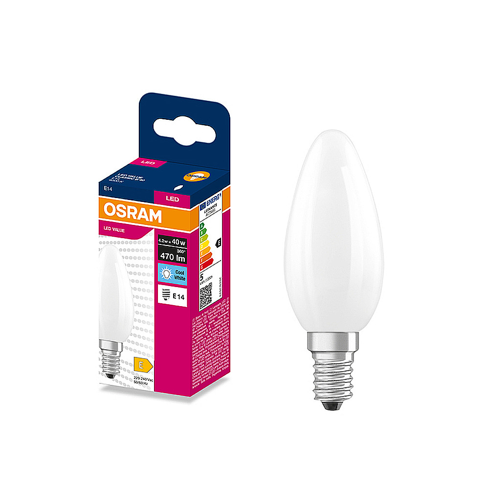 Žiarovka OSRAM LED CLB40 E14 4,2W/840 sviečka FILAMENT GLFR matná 470lm