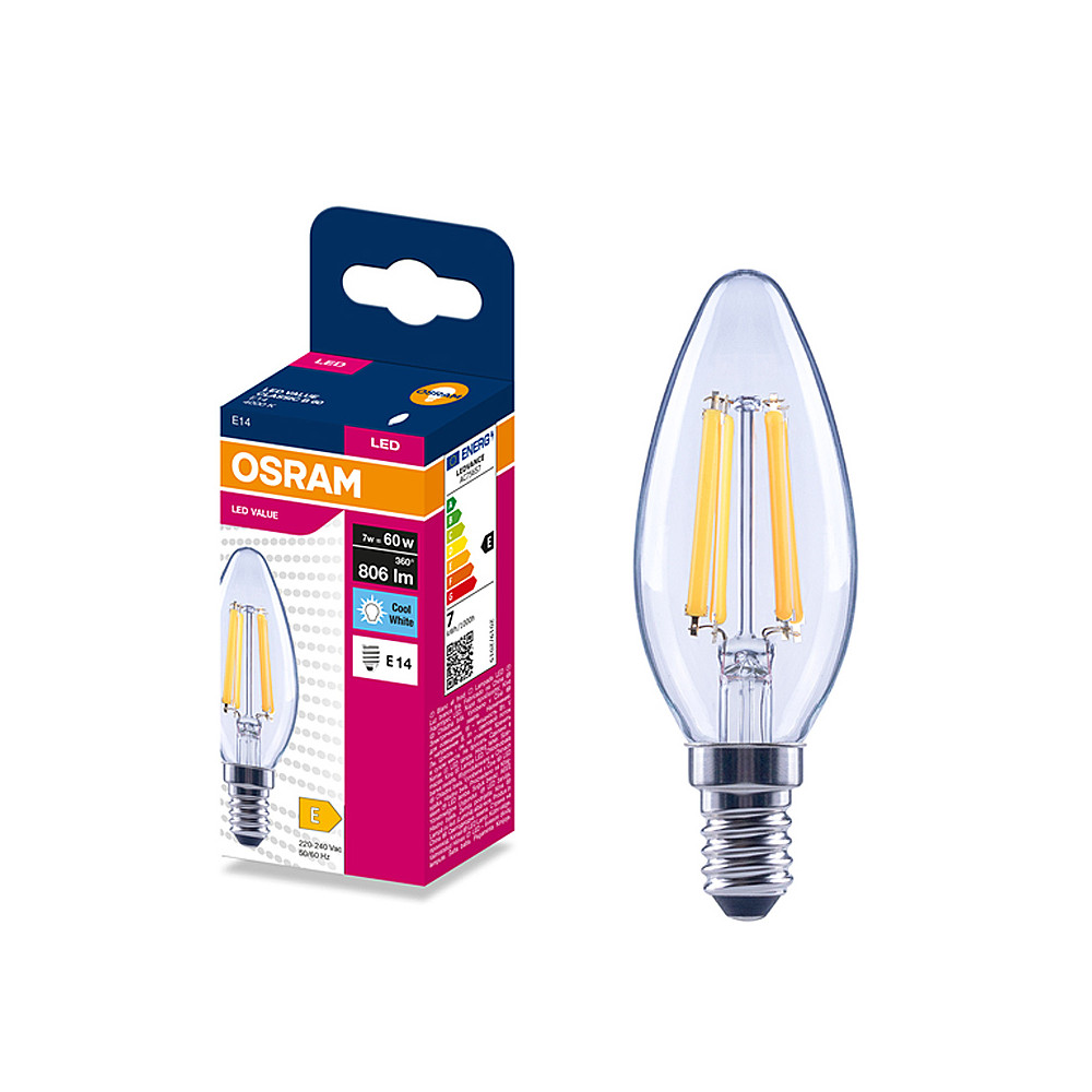 Žiarovka OSRAM LED VALCLB60 E14 7W/840 sviečka FILAMENT