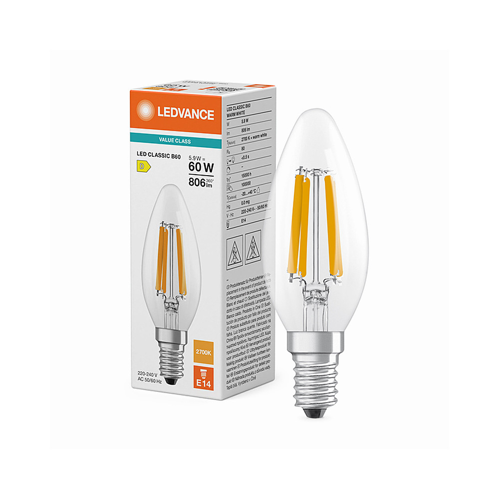 Žiarovka LEDVANCE LED CLB60 E14 5,9W/827 sviečka FILAMENT PMC