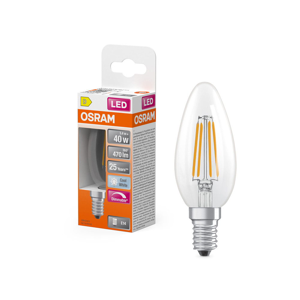 Žiarovka OSRAM LED SCLB40D E14 3,4W/840 sviečka FILAMENT DIM
