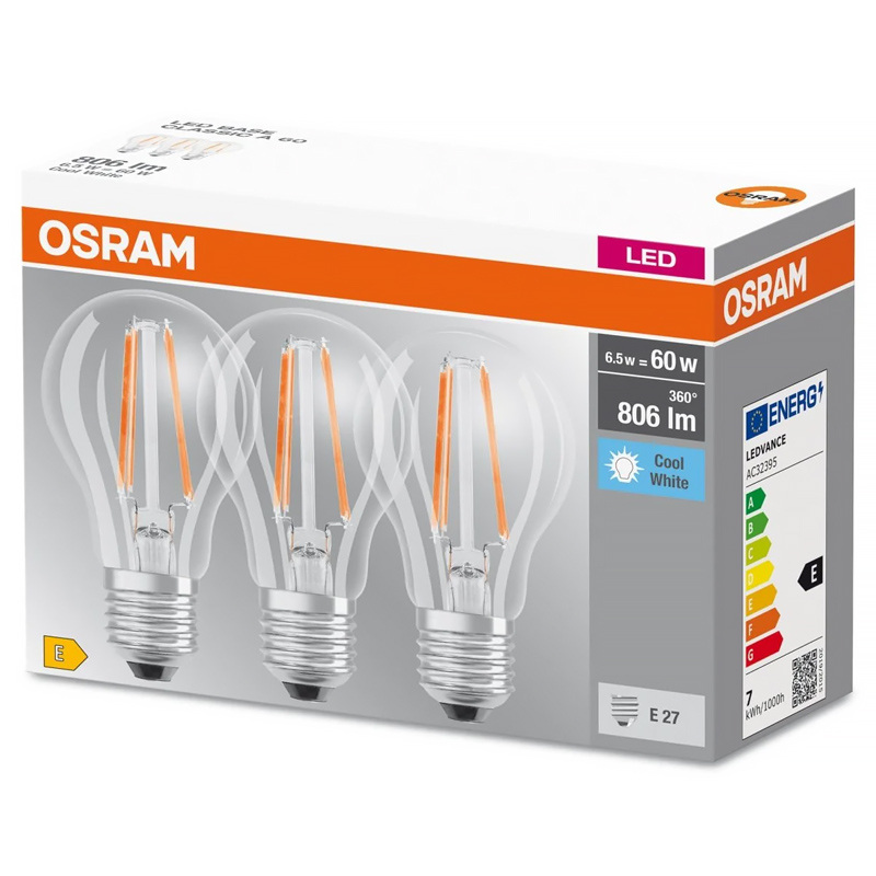 Žiarovka OSRAM LED BCLA60 E27 6,5W/840 3balenie FILAMENT BASECLA60