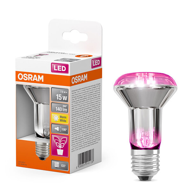 Žiarovka OSRAM LED STAR GROW LAMP FILAMENT E27 R63 7,5W pre rast rastlín