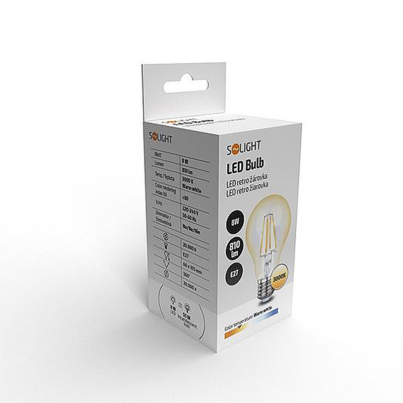 Žiarovka SOLIGHT LED E27 8W 3000K SOLIGHT WZ501A-1 (CLA60) filament