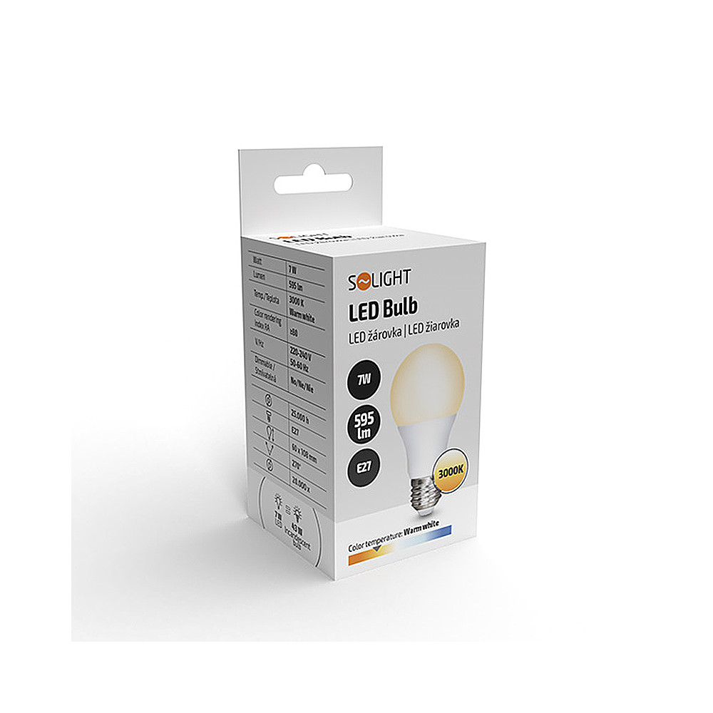 Žiarovka SOLIGHT LED E27 7W 3000K SOLIGHT WZ504-1 (CLA47) 595lm