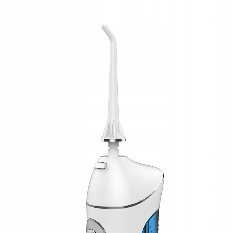 Profesionálny prenosný irigátor zaručuje plnú účinnosť pri každodennej ústnej hygiene. Vďaka vysokému tlaku a koncentrovanej vode sa dostaneme do tých najťažšie dostupných miest medzi zubami a ďasnami. To vám umožní opláchnuť zvyšky jedla a odstrániť nečistoty z línie ďasien, medzier medzi zubami a ďasien.