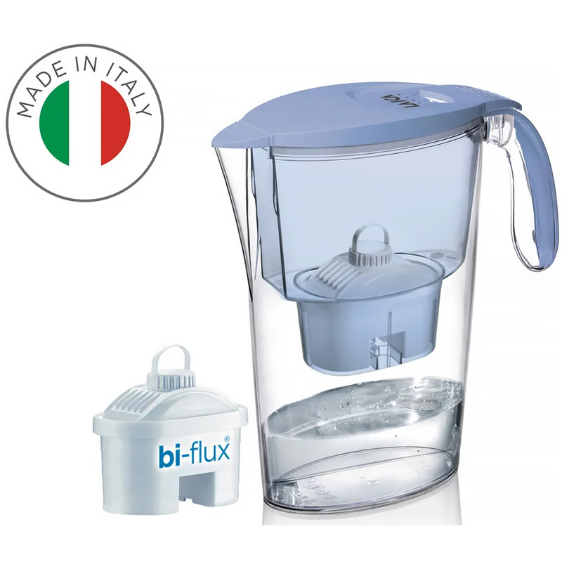 Filtračná kanvica Clear Line ‒ objem zásobníka: 2,3 l / objem filtrovanej vody: 1,2 l • manuálny indikátor stavu filtra • vyrobené v Taliansku • bez BPA • obsahuje 1 kus filtra Bi-flux • farba: modrá