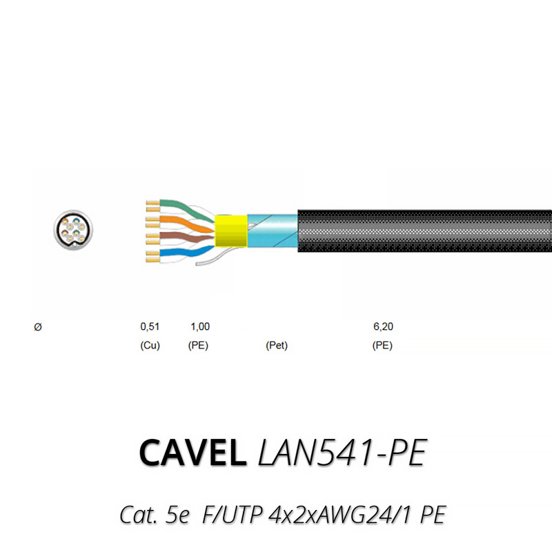 Vonkajší počítačový kábel FTP CAT5e LAN 541 2G 4x2x0,51 mm tienený Cavel (200 m)