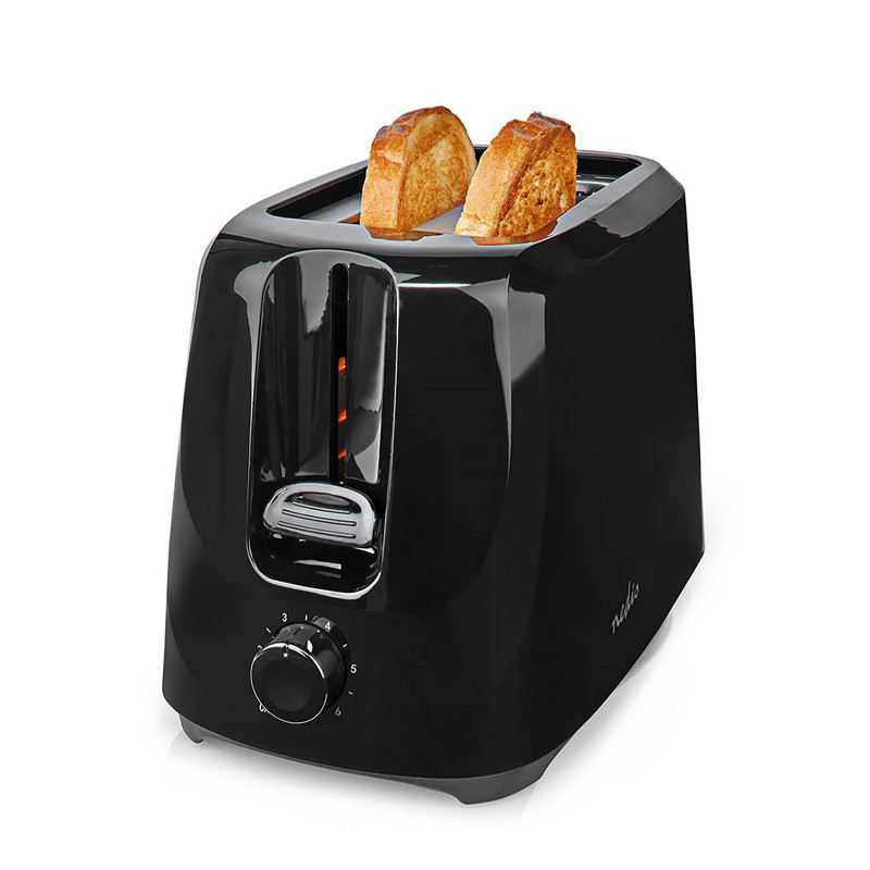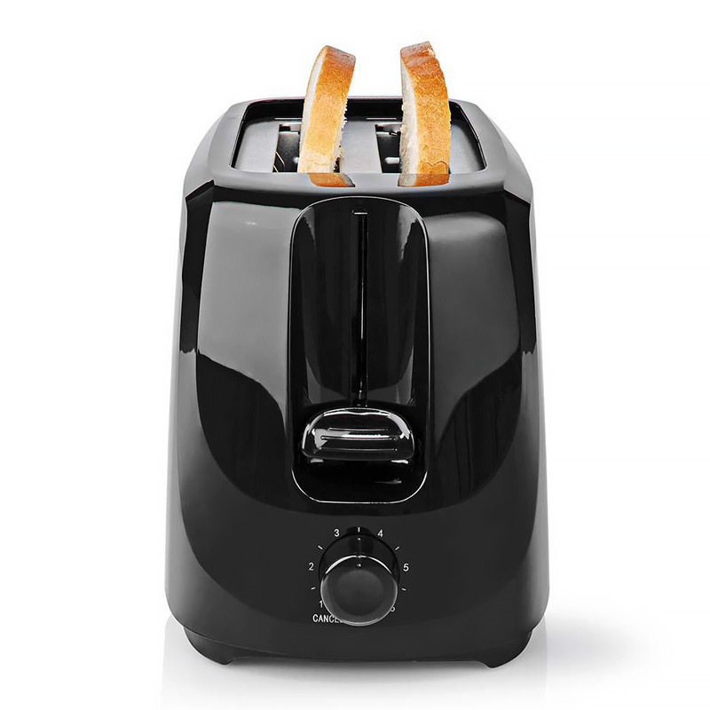 Kompaktný 700W hriankovač vhodný pre 2 plátky chleba, čierne prevedenie.
