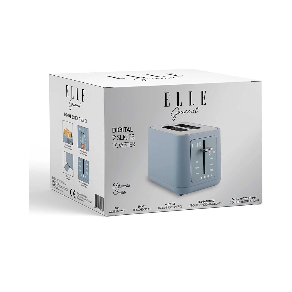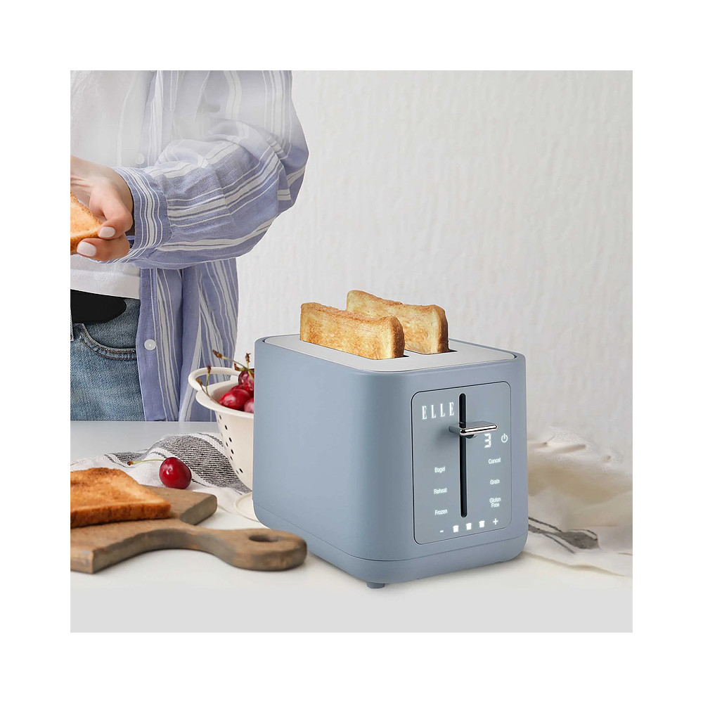 Digitálny dotykový dvojštrbinový hriankovač - bledomodrý. V spojení so sofistikovaným dizajnom a vysokovýkonnou funkčnosťou, tento spotrebič pozdvihne vašu kuchynskú linku svojou elegantnou a modernou estetikou. Vďaka dvom širokým, samocentrovacím otvorom navrhnutým pre konzistentné výsledky si vždy pripravíte dokonalé hrianky, ideálny pre všetko od jemnej briošky až po výdatný remeselný chlieb.