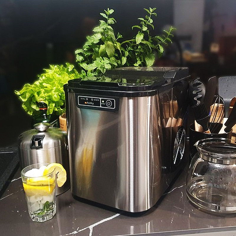 Výrobník ľadu je veľmi výkonné zariadenie, ktoré vám umožní pripraviť studené nápoje na večierku, v kancelárii alebo kdekoľvek, kde máte chuť. Ideálne pre ľadovú kávu! Použitie je veľmi jednoduché. Nepotrebujete priame napojenie na tečúcu vodu. Stačí naliať vodu do nádržky, zapnúť ju a výrobník ľadu začne vyrábať ľad. VYSOKÁ ÚČINNOSŤ - vyrobí až 12 kg kociek denne. Prvá porcia ľadu (9 kociek) je pripravená 9 až 13 minút po spustení stroja.